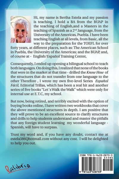Hi, my name is Bertha Estela and my passion is teaching. I hold a BA from the BUAP in the teaching of English,and a Masters in the teaching of Spanish as a 2nd.language, from the University of the Americas, Puebla. I have been teaching English at all levels, from Basic, all the way to the preparation for the TOEFL for over forty years, at different places, such as: The American School in Puebla, the University of the Americas; and the BUAP, and, of course at - English/Español Training Center, Consequently, I ended up opening a bilingual school to teach both languages. On doing this, I realized that none of the books that were in the market at that time - drilled the Know How of the structures that do not transfer from one language to the other Therefore , I wrote my own five-level Series Español Fácil, Editorial Trillas, which has been a real hit and another series of five books "Let¿s Walk the Walk" which were only for internal use at E.T.C, my school. But now, being retired, and terribly excited with the option of buying books online, I have written two workbooks that cover the above mentioned structures in depth. I am positive that they will prove to be an excellent source to clarify structures and drills to help students understand and master the pitfalls that any foreign student learning my wonderful language - Spanish, will have to surpass. Trust my word and, if you have any doubt, contact me at estela386Qhotmail.com without any cost. I will be delighted to help you out.