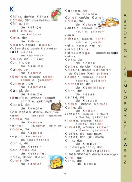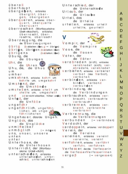 Erweiterter Grundwortschatz für 14 Bundesländer: Schülerlexikon für die Grundschule und Sekundarstufe I, über 2.600 häufige Wörter im Deutschen, alle Wörter nach Schrifteinheiten gegliedert, farbige Markierung der schwierigen Stellen, alle abgegrenzten Schrifteinheiten entsprechen genau den Sprachlauten, alle Nomen mit Artikel im Singular und Plural, alle Verben mit geläufigen Zeitformen, alle Adjektive mit Steigerungsformen, ABC-Leiste zum einfachen Finden der Wörter, wichtige Tabellen über die Verteilung von häufigen und seltenen Schrifteinheiten, für Deutsch als Erst- und Zweitsprache und die Rechtschreib-/LRS-/Legasthenieförderung, enthält die Grund-/Basiswortschätze von Baden-Württemberg, Bayern, Berlin, Brandenburg, Bremen, Hamburg, Hessen, Mecklenburg-Vorpommern, Niedersachsen, Nordrhein-Westfalen, Rheinland-Pfalz, Sachsen, Sachsen-Anhalt und Schleswig-Holstein. Mit Übungen und Aufgaben zum Arbeiten mit diesem Wörterheft. Kurz: Man kann auf einen Blick erkennen, welche derhäufigsten Wörter im Deutschen einfach und welche schwierig zu schreiben sind. Neu aufgenommen wurden die wichtigen Ableitungen und Verlängerungen von Wortbausteinen: Wald wegen Wälder, Bälle wegen Ball. Unentbehrliches Vorbereitungsmaterial auch für anstehende Diktate.