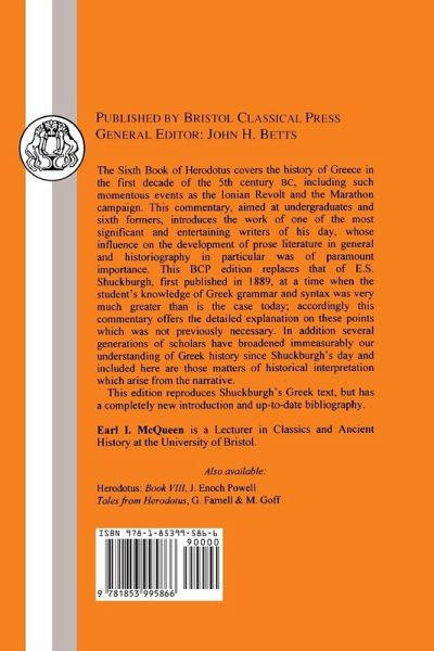 The Sixth Book of Herodotus covers the history of Greece in the first decade of the fifth century BC, including such momentous events as the Ionian revolt and the Marathon Campaign. This commentary, aimed at undergraduates and sixth-formers, is intended to introduce them to the work of one of the most significant and entertaining writers of his day, whose influence on the development of prose literature in general and historiography in particular was of paramount importance. This edition is intended to replace that of E.S. Shuckburgh, first published in 1889 at a time when the student's knowledge of Greek grammar and syntax was very much greater than is the case today. In addition several generations of scholars have broadened immeasurably our understanding of Greek history since Shuckburgh's day. Accordingly this commentary explains points of grammar and syntax while at the same time covering the historical interpretation. This book reproduces Schuckburgh's Greek text, but comes with a new introduction and up-to-date bibliography.