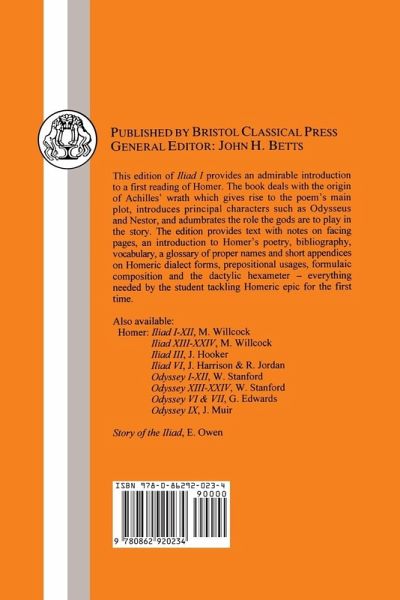 This edition of Iliad I provides an admirable introduction to a first reading of Homer. The book deals with the origin of Achilles' wrath which gives rise to the poem's main plot, which introduces principal characters such as Odysseus and Nestor and adumbrates the role the gods are to play in the story. This edition provides text with notes on facing pages, an introduction to Homer's poetry, bibliography, vocabulary, glossary of proper names and short appendices on Homeric dialect forms, prepositional usages, formulaic composition and the dactylic hexameter - everything needed by the student tackling Homeric epic for the first time.