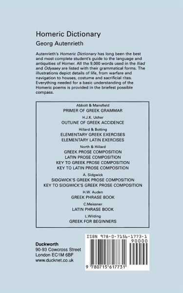 This is the well established dictionary of Homeric Greek vocabulary based on the German original of Dr Georg Autenreith (1833-1900). Autenrieth's Homeric Dictionary has long been the best and most complete student's guide to the language and antiquities of Homer. All the 9,000 words used in the Iliad and Odyssey are listed with their grammatical forms. The illustrations depict details of life, from warfare and navigation to houses, costume and sacrificial rites. Everything needed for a basic understanding of the Homeric poems is provided in the briefest possible compass.