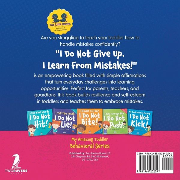 Are you struggling to teach your toddler how to handle mistakes with confidence? Whether it's spilled milk or a tower of blocks tumbling down, little ones can get frustrated when things don't go as planned. But what if your child could learn to see mistakes as a chance to grow? Introducing "I Do Not Give Up! I Learn From Mistakes: An Affirmation-Themed Toddler Book About Making Mistakes (Ages 2-4)"-a delightful and empowering book that turns everyday challenges into opportunities for learning and resilience. This book is packed with simple yet powerful affirmations designed to help toddlers navigate the ups and downs of trying new things. From practicing patience to discovering the joy in trying again, each page encourages little ones to embrace mistakes as part of their learning journey. The affirmations are crafted in language perfect for toddlers, making it easy for them to understand and repeat. What makes this book stand out?Engaging and Relatable: Real-life scenarios that every toddler can relate to, making the lessons easy to apply in their daily lives. Affirmation-Focused: Each affirmation builds self-esteem and teaches the value of persistence, resilience, and a positive attitude toward mistakes. Humor and Fun: The book includes light-hearted moments and playful illustrations that entertain toddlers while learning essential life skills. Perfect for Parents, Teachers, and Guardians: This book is an essential tool for anyone involved in early childhood development. It offers a fun and effective way to teach the importance of trying again and never giving up. "I Do Not Give Up! I Learn From Mistakes" isn't just a book-it's a foundation for building confidence and resilience in your child. Help your little one learn that every mistake is a step towards becoming more assertive and smarter. Order your copy now and give your toddler the tools they need to face challenges with courage and a smile!