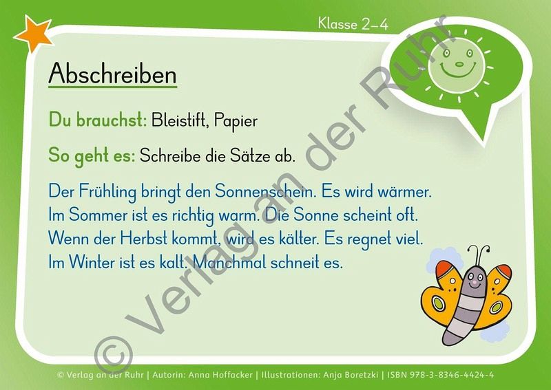 Unterrichtsmaterial (Karteikarten) für Lehrer und Lehrerinnen an Grundschulen, Fach: DaZ, Klasse 2-4 +++ "Ich bin fertig! Was soll ich machen?" - Sicher kennen Sie diese Frage, die Kinder stellen, wenn sie einfach mehr "Futter" brauchen. Mit dieser Differenzierungskartei versorgen Sie Ihre schnellen Schüler und Schülerinnen mit motivierenden Extra-Aufgaben. Auf spielerische Weise werden Themen des DaZ-Unterrichts, wie z. B. Artikel oder Vokabeln, aufgegriffen. Die einfach formulierten Arbeitsaufträge können die Schüler und Schülerinnen selbstständig umsetzen und eine farbliche Differenzierung zeigt zusätzlich den Schwierigkeitsgrad an. Die Karteikarten in DIN A6 lassen sich zudem einfach handhaben und sind ideal für die stille Einzelarbeit. Während die "Schnellen" wichtige Themen spaßvoll üben, können Sie sich konzentriert um die Schüler und Schülerinnen kümmern, die eben noch nicht fertig sind.