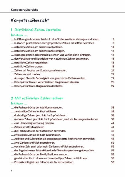 (Natürliche) Zahlen darstellenMit natürlichen Zahlen rechnenVerknüpfung der GrundrechenartenNegative Zahlen