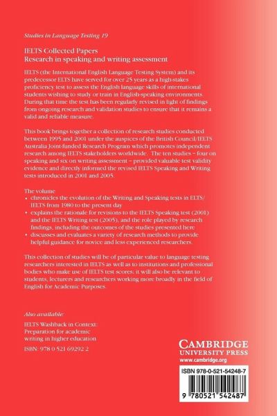 This volume brings together a set of ten IELTS-related research studies - four on Speaking and six on Writing - conducted between 1995 and 2001. The ten studies were funded under the auspices of the British Council/IELTS Australia Joint-funded Research Program which promotes research activity among IELTS test stakeholders around the world. Findings from the studies provided valuable evidence on the validity, reliability, impact and practicality of the IELTS test; they were also instrumental in highlighting aspects needing attention, and so directly informed the revised design and implementation of the IELTS Speaking and Writing Modules introduced in 2001 and 2005. The volume reviews and comments on the specific contribution of each study to the ongoing process of IELTS speaking and writing test development; it also evaluates the range of research methodologies used in the projects and discusses their usefulness for researchers working in the broader field of performance assessment.