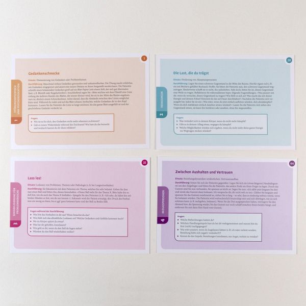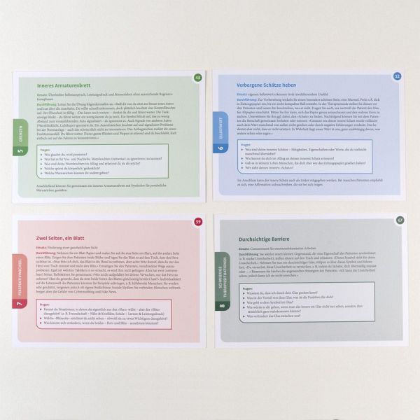 -Erlebnisorientierte Interventionen-Emotionale und soziale Kompetenzen fördern-Selbstreflexion, Selbstfürsorge und Resilienz aufbauenImpact-Techniken haben die große Stärke, mit einfachsten Mitteln und Bildern in komplexen, scheinbar festgefahrenen Situationen ein eindrückliches »Aha-Erlebnis« zu schaffen. Dieses kann den Weg zu Lösungen und therapeutischen Fortschritten erleichtern.Kinder und Jugendliche sind beim »Erwachsenwerden« vor viele Herausforderungen gestellt: in der Schule, bei der Berufswahl und der Identitätsentwicklung. Das Kartenset bietet vielfältige erlebnisorientierte Techniken, um Kindern und Jugendlichen komplexe Sachverhalte und Problemlagen lebendig zu vermitteln und Lösungsmöglichkeiten zu fördern. Die erlebnisorientierte Arbeitsweise wird durch Reflexionsfragen zu jeder Übung unterstützt. Das Kartenset ist für die ambulante und stationäre Einzeltherapie sowie für die Kinder- und Jugendlichenberatung geeignet.-Altersgerechte Ansprache und Themenauswahl für Kinder und Jugendliche-Für Einzel- und Familiensitzungen