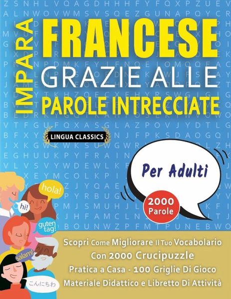 * IMPARA FRANCESE DIVERTENDOTI - AMPLIA IL TUO VOCABOLARIO FACILMENTE! Studiare Con Le Parole Intrecciate È Una Tecnica Di Apprendimento Efficace Usata Nelle Scuole per Migliorare Il Vocabolario - Un Grande Gioco per Stimolare L'Apprendimento! Questa serie di libri è stata progettata per adattarsi al livello di ogni persona. Che siate un principiante, un livello intermedio o che stiate aiutando vostro figlio a imparare una nuova lingua, troverete il libro giusto per le vostre esigenze. Come? Un ottimo complemento per chiunque impari una lingua. Migliorate il vostro livello con un'attività stimolante! Con +40 ore di divertimento, scoprirete e imparerete a ricordare più di 2000 parole. UN MODO STIMOLANTE PER STUDIARE: - VOCABOLARIO SPECIFICO PER ETÀ E LIVELLO: Goditi una selezione di +2000 parole - IMPARARE ATTIVAMENTE: Viene fornito uno spazio per incoraggiare il lettore a fare la propria traduzione - GRANDE FORMATO PUZZLE: Progettato per la migliore leggibilità possibile - SOLUZIONE CHIARA: Soluzioni in un formato chiaro e semplice - DIVERTENTE: Abbastanza difficile da essere impegnativo, abbastanza facile da creare dipendenza DIVERTITEVI A SVILUPPARE LE VOSTRE COMPETENZE LINGUISTICHE: - Pratica Le parole intrecciate rendono la sfida dell'apprendimento di una lingua un piacere! - Progresso Imparate con un vocabolario comune adattato alle vostre capacità. - Ricordate ciò che imparate Una tecnica di apprendimento attivo per aumentare il vostro vocabolario. - Raggiungi i tuoi obiettivi Non esercitatevi solo passivamente. Cercate le traduzioni di nuove parole - trovale nel Puzzle - aggiungile al tuo vocabolario! DISPONIBILE IN OLTRE 50 LINGUE PER: - Principianti - Intermediario - Avanzato - Bambini dai 6 agli 8 anni - Bambini dagli 8 ai 10 anni - Bambini dai 9 ai 12 anni - Adolescenti - Adulti - Anziani Scopri la nostra collezione completa - cerca ""LINGUA CLASSICS"" e scopri nuovi libri per migliorare te stesso - un regalo infallibile per la tua famiglia e i tuoi amici! Goditi subito questa divertente esperienza di apprendimento - Fai amicizia con una nuova lingua facilmente! ------- [ENGLISH] ------- Note: Some content in English might be missing due to length restrictions. * LEARN FRENCH WHILE HAVING FUN - BUILD VOCABULARY EASILY! Word Searches Are an Effective Technique Used in Schools to Increase Vocabulary - It’s an Ideal Game to Stimulate Learning! This book series has been tailored to each person’s specific level. Whether you are a beginner, advanced, or helping your child learn a new language you’ll find the right book for your needs. Why? It’s a great complement for anyone learning a language. Make it easy with an encouraging activity! With +40 hours of entertainment, you will discover and be able to retain over 2000 words: AN EXCITING STUDY COMPANION WITH: - AGE & LEVEL SPECIFIC VOCABULARY: Enjoy a curated selection of +2000 adapted words - ACTIVE LEARNING: Space provided beside each term to encourage the reader to self-translate - PUZZLES IN FULL PAGE FORMAT: Designed for the best readability possible. - BOOK PREVIEW AVAILABLE: No surprises, click on the cover to Look inside the book - EASY MATCH SOLUT...