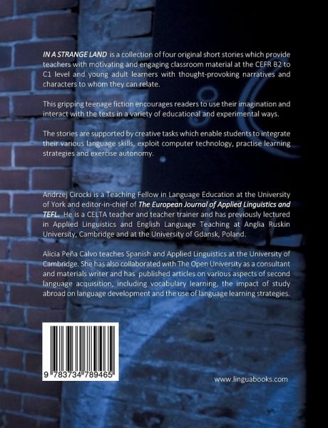 IN A STRANGE LAND is a collection of four original short stories which provide teachers with motivating and engaging classroom material at the CEFR B2 to C1 level. This gripping young adult fiction encourages readers to use their imagination and interact with the texts.The stories are supported by creative tasks in which students can integrate all their language skills, use computer technology, practise learning strategies and exercise autonomy.