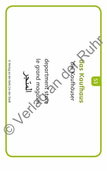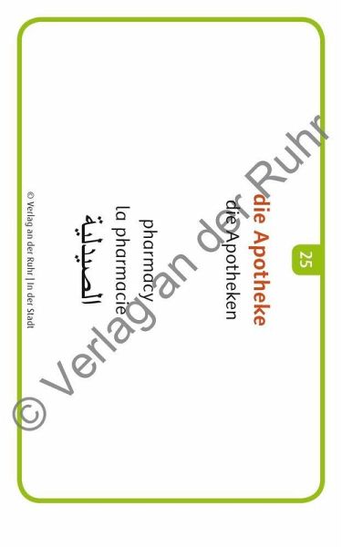 +++Bildkarten für Lehrer und Sprachförderkräfte in der Kita, an Schulen sowie für außerschulische Lehrkräfte, Fach: Sprachförderung, Deutsch als Zweitsprache/Fremdsprache. Für alle Altersstufen; Sprachniveau A1 +++ Herzlich Willkommen! - Welcome! - Bienvenue! - Ahlaan wa sahlaan! Viele Menschen, die z. B. als Flüchtlinge nach Deutschland kommen, sind noch nie mit der deutschen Sprache in Berührung gekommen. Diese Migranten wollen die deutsche Sprache nun in der Regel so schnell wie möglich lernen. Egal ob Kinder oder Erwachsene, ob in Kita oder Schule, im VHS-Kurs, der Flüchtlingshilfe oder zu Hause: Mit diesen flexibel einsetzbaren Bildkarten können Sie Deutschlernern einfach und effektiv helfen. Jedes Set beinhaltet 60 Karten zu den wichtigsten Alltagsbereichen, in denen Sprachkenntnisse besonders nötig sind. Auf der Vorderseite ist jeweils ein Bild von einem Gegenstand dargestellt, auf der Rückseite steht der deutsche Begriff im Singular und Plural mit Artikel. Die Genera sindunterschiedlich farblich markiert. Zusätzlich wird der Begriff in weiteren Sprachen benannt (Englisch, Französisch und Arabisch). Dadurch ergeben sich vielfältige Einsatzmöglichkeiten zum Sprechen und Zuhören. Kurze Anwendungstipps runden das Set ab. Ausführliche Ideen zu Übungen, Spielen u.v.m. finden Sie im zusätzlichen Download. Fotokartenset zu folgendem Thema: - In der Stadt