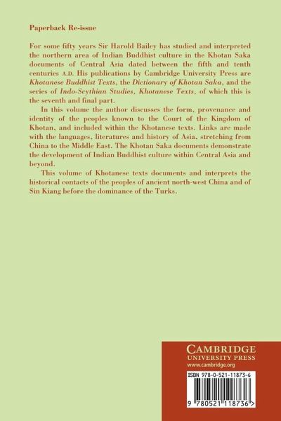 For some fifty years Sir Harold Bailey has studied and interpreted the northern area of Indian Buddhist culture in the Khotan Saka documents of Central Asia dated between the fifth and tenth centuries AD. In this volume the author discusses the form, provenance and identity of the peoples known to the Court of the Kingdom of Khotan and included within the Khotanese texts. Links are made with the languages, literatures and history of Asia, stretching from China to the Middle East. The Khotan Saka documents demonstrate the development of Indian Buddhist culture within Central Asia, and beyond. This volume of Khotanese texts documents and interprets the historical contacts of the peoples of ancient north-west China and of Sin Kiang before the dominance of the Turks.