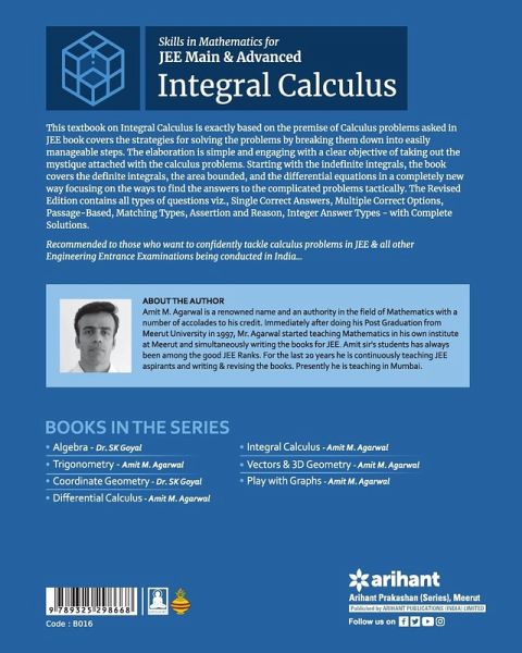 1. Skill in Mathematics' series is prepared for JEE Main and Advanced papers 2. It is a highly recommended textbook to develop a strong grounding in Integral Calculus 3. The book covers the entire syllabus into 4 chapters 4. Each chapter includes a wide range of questions that are asked in the examinations Good foundational grip is required in the Integral Calculus, while you are preparing for JEE Mains & Advanced or any other engineering. Bringing up the series "Skills in Mathematics for JEE Main & Advanced for Integral Calculus" that is carefully revised with the sessionwise theory and exercise; to help candidates to learn & tackle the mathematical problems. The book has 4 Chapters covering the whole syllabus for the JEE Mains and Advanced as prescribed. Each chapter is divided into sessions giving complete clarity to concepts. Apart from sessionwise theory, JEE Type examples and Chapter Exercise contain huge amount of questions that are provided in every chapter under Practice Part. Prepared under great expertise, it is a highly recommended textbook to develop a strong grounding in Algebra to perform best in JEE and various engineering entrances. TOC: Indefinite Integrals, Definite Integrals, Areas of Bounded Regions, Differential Equations.
