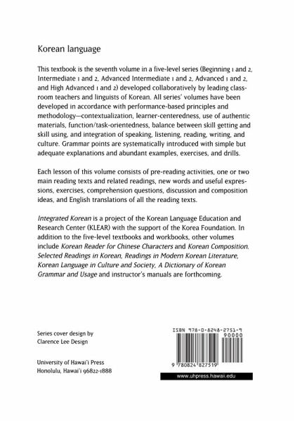 These textbooks are the seventh and eighth volumes in a five-level series developed collaboratively by leading classroom rteachers and linguists of Korean. Grammar points are systematically introduces with simple but adequate explanations and abundant examples, exercises and drills.