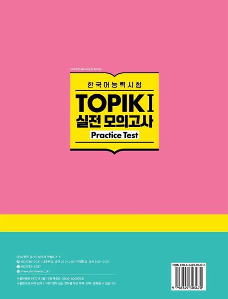 ¿ This book is a textbook for learners who want to take the Test of Proficiency in Korean TOPIK ¿ and consists of 5 practice tests. ¿ Learning methods for listening and reading tests are presented, and the types of questions by area are summarized. In addition, example questions and explanations are presented together so that the flow of the test can be checked at once. ¿ Five practice tests are included in accordance with the difficulty and composition similar to the actual TOPIK test so that learners can improve their actual test sense. ¿ It provides explanation for each question so that you can grasp the core of the question, so that learners can fully understand the question. ¿ Practice filling out the OMR answer sheet you would in a real exam.