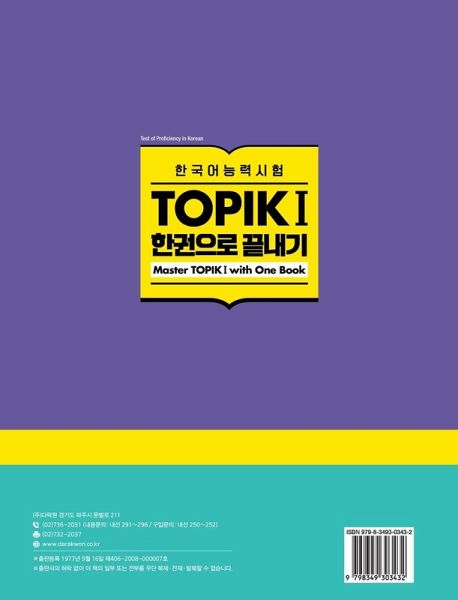 ¿ When preparing for the listening and reading tests, it introduces learning methods for each area, helping learners learn by focusing on what to focus on. ¿ Exercises are composed according to the type and difficulty of the questions that appear in the actual TOPIK I test. ¿ Providing analysis of question types and solution strategies for writing problems. ¿ After [Exercise], [Additional learning] or [Key expressions] related to each question are organized so that you can learn more broadly. ¿ By taking the [Practice Test], you can get a feel for the actual test. It is a good idea to solve the problems according to the actual test time, check the answers on the OMR card at the back of the textbook, and practice writing the answers.