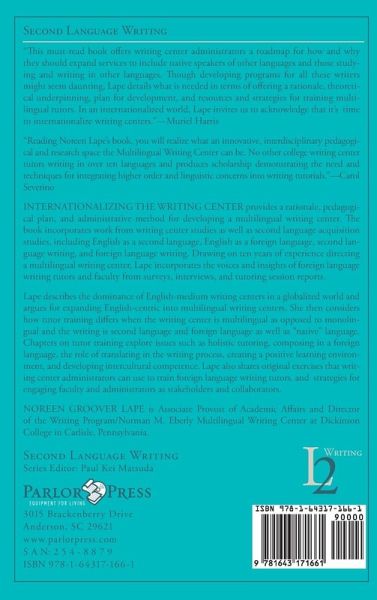 "This must-read book offers writing center administrators a roadmap for how and why they should expand services to include native speakers of other languages and those studying and writing in other languages. Though developing programs for all these writers might seem daunting, Lape details what is needed in terms of offering a rationale, theoretical underpinning, plan for development, and resources and strategies for training multilingual tutors. In an internationalized world, Lape invites us to acknowledge that it's time to internationalize writing centers."--Muriel Harris "Reading Noreen Lape's book, you will realize what an innovative, interdisciplinary pedagogical and research space the Multilingual Writing Center can be. No other college writing center tutors writing in over ten languages and produces scholarship demonstrating the need and techniques for integrating higher order and linguistic concerns into writing tutorials."--Carol Severino INTERNATIONALIZING THE WRITING CENTER provides a rationale, pedagogical plan, and administrative method for developing a multilingual writing center. The book incorporates work from writing center studies as well as second language acquisition studies, including English as a second language, English as a foreign language, second language writing, and foreign language writing. Drawing on ten years of experience directing a multilingual writing center, Lape incorporates the voices and insights of foreign language writing tutors and faculty from surveys, interviews, and tutoring session reports. Lape describes the dominance of English-medium writing centers in a globalized world and argues for expanding English-centric into multilingual writing centers. She then considers how tutor training differs when the writing center is multilingual as opposed to monolingual and the writing is second language and foreign language as well as "native" language. Chapters on tutor training explore issues such as holistic tutoring, composing in a foreign language, the role of translating in the writing process, creating a positive learning environment, and developing intercultural competence. Lape also shares original exercises that writing center administrators can use to train foreign language writing tutors. and strategies for engaging faculty and administrators as stakeholders and collaborators. NOREEN GROOVER LAPE is Associate Provost of Academic Affairs and Director of the Writing Program/Norman M. Eberly Multilingual Writing Center at Dickinson College in Carlisle, Pennsylvania.