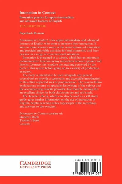 Intonation in Context is for upper-intermediate and advanced learners of English who want to improve their intonation. It aims to make learners aware of the main features of intonation and provides enjoyable activities for both controlled and freer practice in a range of conversational situations. Intonation is presented as a system which has an important communicative function in any interaction between speaker and listener. Learners first explore the meaning conveyed by the parts of this system before going on to a variety of production exercises. The book is intended to be used alongside any general coursebook to provide a systematic and accessible introduction to this often neglected area of pronunciation. The easy-to-follow explanations assume no specialist knowledge of the subject and the accompanying cassette provides clear models, making this an excellent choice for both classroom use and self-study.