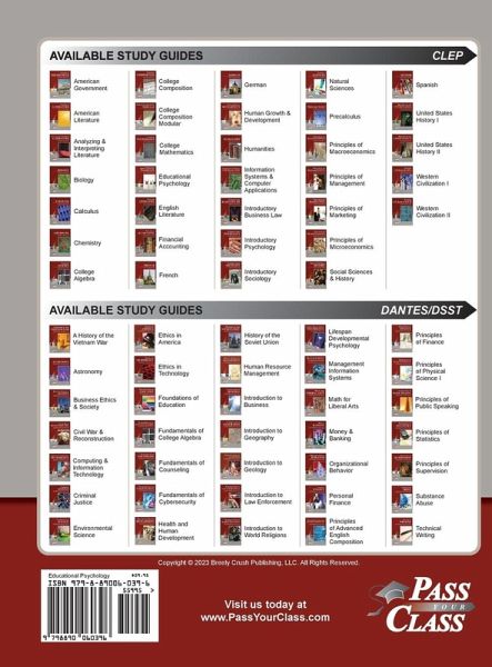 PREPARING TO PASS A CLEP TEST HAS NEVER BEEN FASTER AND EASIER Do you want to pass on the first try? Our learning system includes our new sample test question book along with our companion study guide - featuring a condensed format teaching you ONLY what you need to know to pass your test! Included in this book are sample test questions that will help you get a better understanding of the material and prepare you for the actual exam. Our sample questions will give you the confidence you need to succeed. Whether you're a seasoned test-taker or new to the world of CLEP testing, our book has everything you need to pass with flying colors. So why wait? Start studying today, take your test, and start racking up some college credits. WHY USE THIS BOOK? ¿SAVE TIME - Forget trying to figure out what to study or how to know when you've studied enough. With one study guide and one companion book, you are ready to go. ¿SAVE MONEY - Save thousands on college tuition by testing out. ¿GIVE YOUR EDUCATION A HEAD START - Knock out your first (or last!) college classes. Feel confident when you take the test! WHAT IS IN THE BOOK? ¿ Study skills to get you on the right track. ¿ 4 sample tests to get you ready for exam day. ¿ 350 test questions to test your learning.