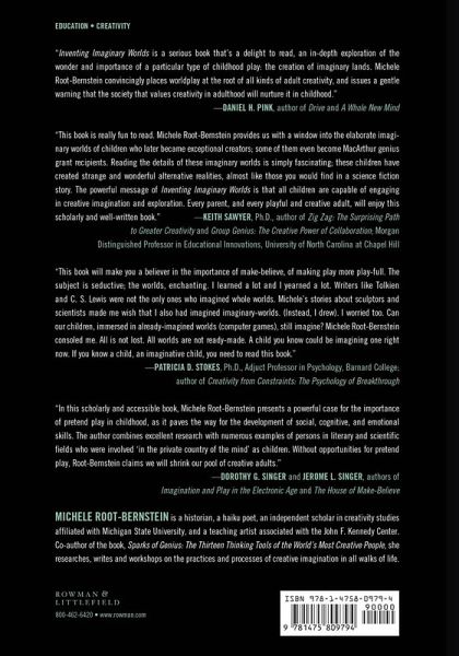 How can parents, educators, business leaders and policy makers nurture creativity, prepare for inventiveness and stimulate innovation? One compelling answer, this book argues, lies in fostering the invention of imaginary worlds, a.k.a. worldplay. First emerging in middle childhood, this complex form of make-believe draws lifelong energy from the fruitful combustions of play, imagination and creativity. Unfortunately, trends in modern life conspire to break down the synergies of creative play with imaginary worlds. Unstructured playtime in childhood has all but disappeared. Invent-it-yourself make-believe places have all but succumbed in adolescence to ready-made computer games. Adults are discouraged from playing as a waste of time with no relevance to the workplace. Narrow notions of creativity exile the fictive imagination to fantasy arts. And yet, as Michele Root-Bernstein demonstrates by means of historical inquiry, quantitative study and contemporary interview, spontaneous worldplay in childhood develops creative potential, and strategic worldplay in adulthood inspires innovations in the sciences and social sciences as well as the arts and literature. Inventing imaginary worlds develops the skills society needs for inventing the future. For more on Inventing Imaginary Worlds, check out: www.inventingimaginaryworlds.com Check out Michele's website: www.inventingimaginaryworlds.com
