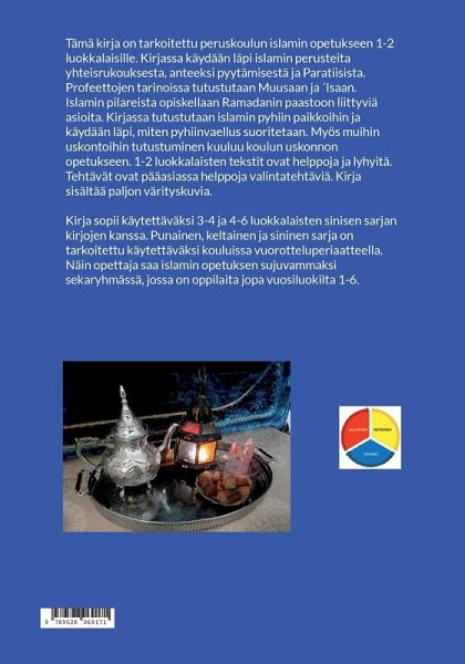 Tämä kirja on tarkoitettu peruskoulun islamin opetukseen 1-2 luokkalaisille. Kirjassa käydään läpi islamin perusteita yhteisrukouksesta, anteeksi pyytämisestä ja Paratiisista. Profeettojen tarinoissa tutustutaan Muusaan ja ¿Isaan. Islamin pilareista opiskellaan Ramadanin paastoon liittyviä asioita. Kirjassa tutustutaan islamin pyhiin paikkoihin ja käydään läpi, miten pyhiinvaellus suoritetaan. Myös muihin uskontoihin tutustuminen kuuluu koulun uskonnon opetukseen. 1-2 luokkalaisten tekstit ovat helppoja ja lyhyitä. Tehtävät ovat pääasiassa helppoja valintatehtäviä. Kirja sisältää paljon värityskuvia. Kirja sopii käytettäväksi 3-4 ja 4-6 luokkalaisten sinisen sarjan kirjojen kanssa. Punainen, keltainen ja sininen sarja on tarkoitettu käytettäväksi kouluissa vuorotteluperiaatteella. Näin opettaja saa islamin opetuksen sujuvammaksi sekaryhmässä, jossa on oppilaita jopa vuosiluokilta 1-6.