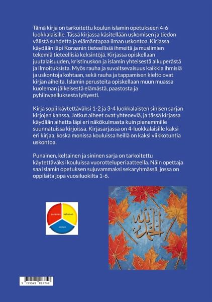 Tämä kirja on tarkoitettu koulun islamin opetukseen 4-6 luokkalaisille. Tässä kirjassa käsitellään uskomisen ja tiedon välistä suhdetta ja elämäntapaa ilman uskontoa. Kirjassa käydään läpi Koraanin tieteellisiä ihmeitä ja muslimien tekemiä tieteellisiä keksintöjä. Kirjassa opiskellaan juutalaisuuden, kristinuskon ja islamin yhteisestä alkuperästä ja ilmoituksista. Myös rauha ja suvaitsevaisuus kaikkia ihmisiä ja uskontoja kohtaan, sekä rauha ja tappamisen kielto ovat kirjan aiheita. Islamin perusteita opiskellaan muun muassa kuoleman jälkeisestä elämästä, paastosta ja pyhiinvaelluksesta lyhyesti. Kirja sopii käytettäväksi 1-2 ja 3-4 luokkalaisten sinisen sarjan kirjojen kanssa. Jotkut aiheet ovat yhteneviä, ja tässä kirjassa käydään aihetta läpi eri näkökulmasta kuin pienemmille suunnatuissa kirjoissa. Kirjasarjassa on 4-luokkalaisille kaksi eri kirjaa, koska monissa kouluissa heillä on kaksi viikkotuntia uskontoa. Punainen, keltainen ja sininen sarja on tarkoitettu käytettäväksi kouluissa vuorotteluperiaatteella. Näin opettaja saa islamin opetuksen sujuvammaksi sekaryhmässä, jossa on oppilaita jopa vuosiluokilta 1-6.