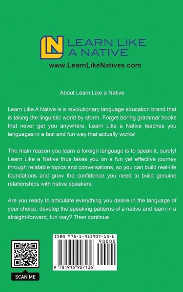 Easily Learn Conversational Italian in Just a Few Days with the Help of Everyday Italian Dialogues for Beginners Like You! Have you ever been in a situation where you try to talk to your Italian friends in their native tongue, and end up being laughed at for butchering their language? We feel you! We know how embarrassing (and hilarious) this can be. Italian is one of the most widely spoken languages today, and opens up the door to a plethora of new opportunities to view and experience the world. Not only will learning Italian increase your ability to converse with different people across the globe, but it also gives you a winning edge over others in your career or business. When you put in the work to learn Italian, you are broadening your horizons and giving yourself a better chance to succeed in both life and work. So, how do you get started? EASY - just add "Italian Dialogues for Beginners" by Learn Like a Native in your toolkit! This book is crafted with beginners like you in mind. Here is where you will find simple yet stimulating Italian language usage that is mostly in the present tense, so you will be able to effectively focus on dialogues and root verbs, as well as effortlessly understand and find patterns in subject-verb agreement. In the simple, easy-to-digest dialogues within, you will read about people going through daily life situations speaking to each other, and using the most common, helpful words and phrases in Italian. With the help of this fun & game-changing Italian Dialogues guide, you will: Effectively learn Italian transition words the easiest and fastest way possible Use the right Italian prepositions anytime, anywhere without skipping a beat Expertly ask all your burning questions using situation-appropriate Italian terms Boost your knowledge in common Italian present tense verbs like a native And so much more! "Italian Dialogues for Beginners" stands out from all the other Italian Language Guides out there because it harnesses the power of everyday Italian dialogues. You won't find any boring lectures on grammar and endless vocabulary lists in this guide - that is a promise! This guide utilizes crazy effective Italian immersion tools that make learning Italian fun and easy, even without having to leave the country! Scroll up, add this book to your library, and Kick Start Your Italian Learning Journey Today! P.S. Go at LearnLikeNatives.com and get the first ebook of the series FOR FREE!