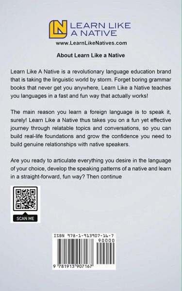 Immerse Yourself in Learning Italian with Short Stories that Make the Language Come Alive & Easy to Learn! Want to learn Italian the easiest and most exciting way possible? You came to the right place! Learning a second language is a great mental exercise if you want to create new neural pathways in your brain, so you can stay quick and sharp. Plus, learning a widely spoken language - Italian in particular - can open up a myriad of new opportunities for you in both life and work. One great obstacle that English speakers face when learning Italian is that they are in an environment where they can't fully immerse themselves in the language learning process. And that's why "Italian Short Stories for Beginners" by Learn Like a Native is perfect for beginners like you! "Italian Short Stories for Beginners" harnesses the power of a great tale in fast-tracking your learning process. It has several uniquely structured Italian-to-English short stories that are saturated with over 100 simple, easy-to-digest dialogues and daily used phrases, so you can seamlessly learn the language, even as you drive towards work! In the stories within, you will see people speaking to each other, going through daily life situations, and using the most common, helpful words and phrases in Italian. Learn Like a Native crafted this book with beginners in mind. Here is where you will find simple yet stimulating Italian language usage that is mostly in the present tense, so you will be able to effectively focus on dialogues and root verbs, as well as effortlessly understand and find patterns in subject-verb agreement. Over the course of this fun & game-changing guide, beginners like you will: Effortlessly learn basic Italian with the help of cleverly structured short stories for beginners Quickly absorb Italian terms for possessing common everyday objects Cleverly incorporate prepositions and common present tense verbs for any situation Easily relay your emotions, questions, likes, and dislikes in Italian anytime, anywhere And so much more! Forget about boring lectures on grammar and endless vocabulary lists. With the help of this book, English speakers like you can easily learn Italian and immerse themselves in it without having to leave the country! Scroll up, add this book to your library, and Start Learning Italian Today! P.S. Get the first ebook of the series FOR FREE at LearnLikeNatives.com