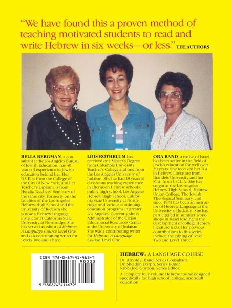 Motivated college and adult students can read and write Hebrew in just six weeks. Students with no previous Hebrew exposure, or those who just need a quick review, will learn phonetic Hebrew reading, script writing, and a basic Hebrew vocabulary of 100 words. This primer satisfies the entry requirements for any Hebrew language program and is a particularly apt introduction to Hebrew: A Language Course.