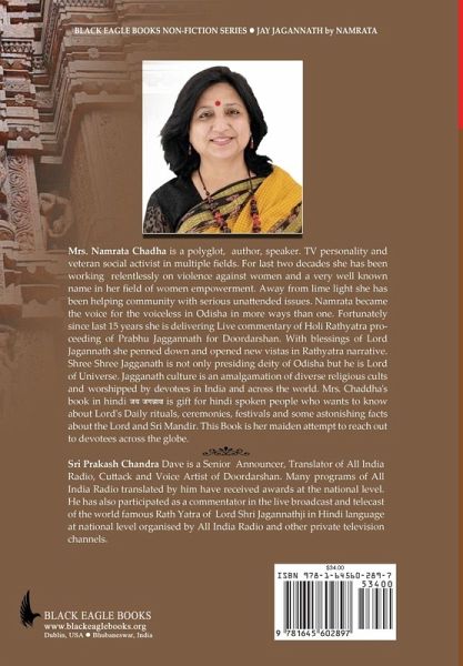 Sree Sree Jagannath is not only presiding deity of Odisha but he is Lord of Universe . Jagannath culture is an amalgamation of diverse religious cults and worshipped by devotees in India and across the world. Mrs. Chaddha's book in Hindi Jay Jagannath is a gift for Hindi speaking people who want to know about Lord's Daily rituals, ceremonies, festivals and some astonishing facts about the Lord and Sri Mandir. This Book is her maiden attempt to reach out to devotees across the globe.