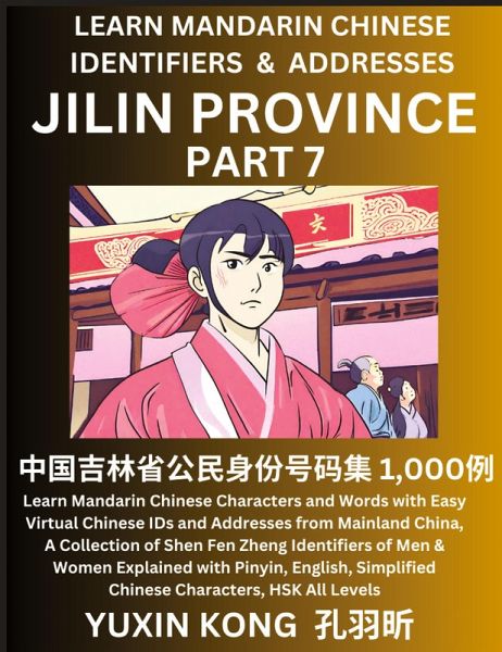 Let's learn Mandarin Chinese while appreciating the Shen Fen Zheng identifiers (¿¿¿¿¿) from different cities and counties of China's Jilin Province (¿¿¿). This book contains 100 imaginary (virtual) Chinese Shen Fen Zheng of men and women of different Chinese ethnic groups to help the students of Mandarin Chinese language understand the concept of Chinese IDs along with associated non-real addresses, postal codes, and phone numbers. The book series contain 10 books and total 1,000 Chinese IDs. Pinyin and English have been provided for all the addresses. The titles are suitable for the students of HSK all levels.