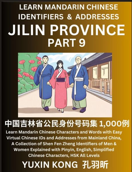 Let's learn Mandarin Chinese while appreciating the Shen Fen Zheng identifiers (¿¿¿¿¿) from different cities and counties of China's Jilin Province (¿¿¿). This book contains 100 imaginary (virtual) Chinese Shen Fen Zheng of men and women of different Chinese ethnic groups to help the students of Mandarin Chinese language understand the concept of Chinese IDs along with associated non-real addresses, postal codes, and phone numbers. The book series contain 10 books and total 1,000 Chinese IDs. Pinyin and English have been provided for all the addresses. The titles are suitable for the students of HSK all levels.