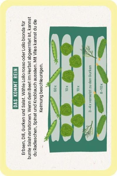 Du willst das Gärtnern im Hochbeet ausprobieren, hast aber keine Ahnung, wie das geht? Du hast keine Lust, dich durch einen Berg an Fachliteratur zu kämpfen und willst dich lieber gleich ins Tun stürzen? Dann ist dieses Kartenset genau das Richtige für dich!