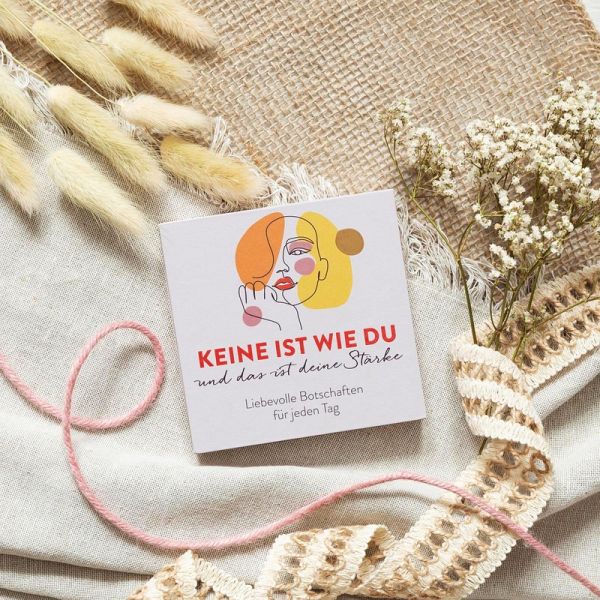 Die Karten-Box Keine ist wie du und das ist deine Stärke ist ein tolles Geschenk für dich selbst und für jede Frau, der du sagen möchtest, wie wundervoll sie ist: Die Box enthält 30 modern gestaltete Mindset-Karten zu den Themen »Selbstliebe« und »positives Denken«.