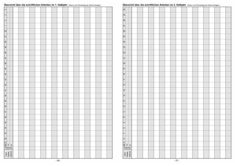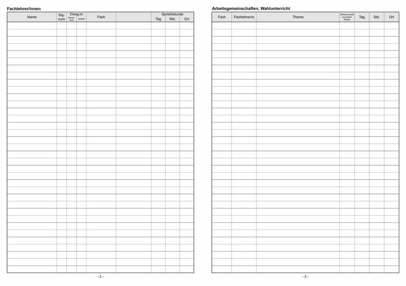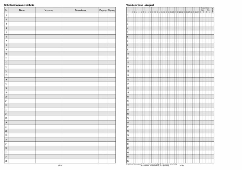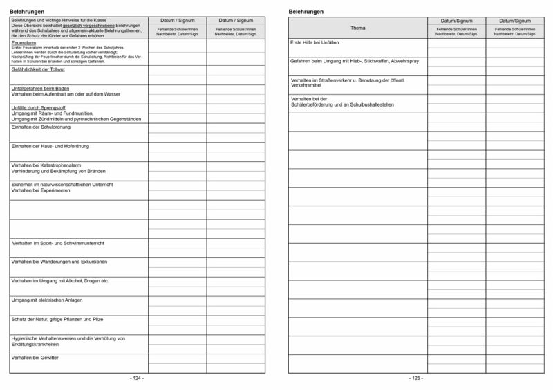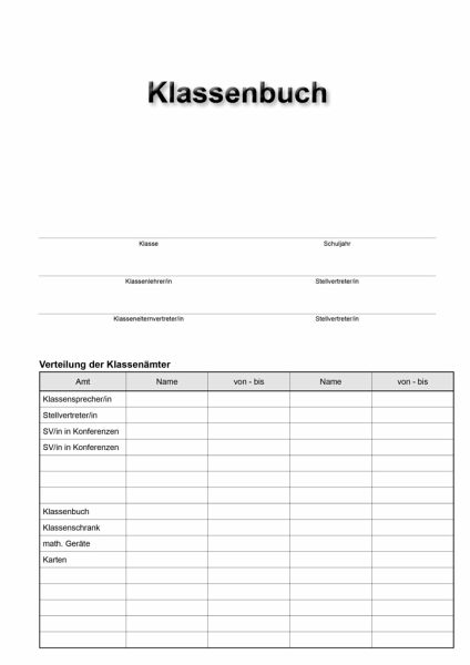 Klassenbuch "Standard" mit festem Bucheinband - für 1 Schuljahr Inhalt: Stundenpläne, Lehrer- und Schülerverzeichnis, monatliche Versäumnisse im Registerschnitt, Wahlunterricht, AG's, Übersicht schriftliche Arbeiten, eingeführte Schulbücher, ausgegebene Lehrmittel, behandelter Lesestoff, Chronik der Klasse, Lehrberichte pro Tag 11 Stunden (Mo-Fr)