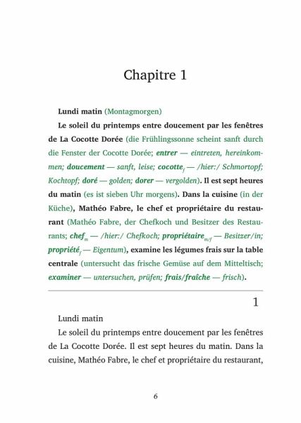 Leseprobe: https://easyoriginal.com/leseproben/DF42.pdf Französische Krimi-Lektüre für Anfänger (A1-A2) - Frank-Lesemethode mit erklärenden Einfügungen & Audio-DownloadTauchen Sie ein in einen Kriminalfall - und verbessern Sie dabei spielerisch Ihr Französisch!Diese spannende Kurzgeschichte ist Teil der beliebten Reihe für Sprachlernende und basiert auf der bewährten Frank-Lesemethode. Handlung: La critique anonyme - Der anonyme KritikerWerden Sie den Kritiker entlarven, bevor alles zusammenbricht?Im charmanten Restaurant "La Cocotte Dorée" ist die Stimmung zum Zerreissen gespannt. Ein einziger Brief des legendären "Guide Authentique" hat alles verändert: Ein anonymer Kritiker wird diese Woche zu Besuch kommen - eine Inspektion, die über Ruhm oder Ruin entscheiden kann.Für den perfektionistischen Chefkoch Mathéo und sein engagiertes Team beginnt ein Wettlauf gegen die Zeit. Jeder Gast ist ein potenzieller Richter, jede Bestellung eine Prüfung. Die Paranoia steigt, als plötzlich seltsame Pannen die makellose Routine der Küche stören: Das Salz wird ausgetauscht, Lieferungen kommen zur falschen Zeit, und die geheiligten Rezepte werden heimlich verändert.Handelt es sich um gezielte Sabotage? Oder sind dies die unorthodoxen Tests des getarnten Kritikers? Der Druck ist immens, die Verdächtigungen wachsen mit jeder Stunde. Von der eleganten Stammkundin über den neugierigen Geschäftsmann bis hin zum mysteriösen Fremden - jeder könnte derjenige sein, der das Schicksal des Restaurants in seinen Händen hält.Tauchen Sie ein in die hochspannende Welt der Spitzengastronomie, wo Leidenschaft an Wahnsinn grenzt und ein einziges Gericht über eine ganze Zukunft entscheidet. La Critique Anonyme ist ein fesselnder Krimi voller unerwarteter Wendungen, der Sie bis zur letzten Seite nicht mehr loslassen wird. Können Sie das Rätsel lösen? Bestellen Sie jetzt und erleben Sie den Nervenkitzel hautnah! Was dieses Buch besonders macht Frank-Lesemethode: Deutsche Erklärungen und Hilfen sind direkt im spanischen Text integriert - ohne den Lesefluss zu unterbrechen Keine klassische Übersetzung, sondern kontextbasierte Unterstützung Originaltext auf B1-Niveau, aber vollständig lesbar für A1-A2 durch gezielte sprachliche Hilfen Inklusive Audio-Download für gezieltes Hörverständnis und Nachsprechen Vorteile für SprachlernendeZugang zu authentischem Französisch ab der ersten Seite - ohne Überforderung Wortschatzaufbau im Kontext, nicht isoliert Verstärkung von Grammatik, Ausdruck und Sprachgefühl Ideal für Selbstlerner, Wiedereinsteiger und motivierende Unterrichtslektüre Diese Geschichte ist Teil einer umfangreichen Reihe für Deutschsprachige, die mit echter Literatur und professioneller sprachlicher Begleitung Französisch lernen möchten. Audio inklusive. Mehr zur Methode: https://easyoriginal.com/frank-lesemethode