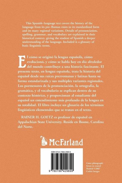 The Spanish language has a long and rich history, from its prehistoric roots to its position today as the mother tongue of nearly 400 million inhabitants of 21 countries. How the language originated, how it evolved, and how it is spoken today around the world makes for a fascinating story that greatly enhances the study of written and spoken Spanish. This Spanish-language text covers the history of Spanish from its pre-Roman and Latin roots to its standardized form and its many regional variations. Along the way, discussion covers the spread of Latin on the Iberian Peninsula, the development of romance dialects due to a number of sociolinguistic influences, and the process of creating a standard variety of Spanish. It concludes with a discussion of the origin and the range of dialects that are spoken across the vast geographical area that forms the Spanish-speaking world. Details of pronunciation, spelling, grammar, and vocabulary are explained in their historical context, giving the student of Spanish a deeper understanding of the language as a whole. Perfect for students of Spanish as well as Spanish-speaking readers seeking to expand their general knowledge of the language, this book also includes a glossary of basic linguistic terms discussed in the text. Instructors considering this book for use in a course may request an examination copy here. La lengua espanola tiene una rica y larga historia, desde sus raices prehistoricas hasta su estado actual como la lengua materna de casi 400 millones de habitantes en 21 paises. El como se origino, como evoluciono, y como se habla hoy en dia alrededor del mundo contribuye a una historia fascinante que complementa el estudio del espanol escrito y hablado. El presente texto, en lengua espanola, trata la historia del espanol desde sus raices prerromanas y latinas hasta su forma estandarizada y sus multiples variantes regionales. A lo largo de la narrativa se cubre la expansion del latin en la Peninsula Iberica, el desarrollo de los dialectos romances debido a una serie de influencias de tipo sociolinguistico, y el proceso de crear una variante estandar del espanol. El libro concluye con una discusion de los origenes y de la variedad de dialectos que se hablan en la vasta zona geografica que comprende el mundo hispanohablante. Los pormenores de la pronunciacion, la ortografia, la gramatica, y el vocabulario se explican dentro de su contexto historico, y proporcionan al estudiante del espanol un entendimiento mas profundo de la lengua en su totalidad. El libro es perfectamente adecuado para los estudiantes del espanol tanto como para otros lectores hispanohablantes que desean aumentar sus conocimientos de la lengua, e incluye tambien un glosario de los terminos linguisticos elementales que se tratan en el texto. Instructors considering this book for use in a course may request an examination copy here.