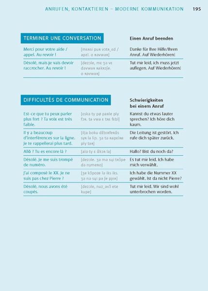Französisch auffrischen und erweiternSatzbausteine nachschlagen und lernenDialoge zum Anhören und Nachsprechen: Die französische Sprache und Kommunikationsfähigkeit aktiv übenAlle Dialoge finden Sie als Audios in der Scan2Learn-AppFranzösisch nach Themen: In 14 Kapiteln den wichtigsten Wortschatz vertiefenMehr wissen: Landeskundliche und sprachliche Besonderheiten erweitern und Fettnäpfchen vermeiden