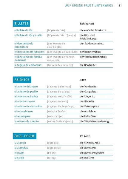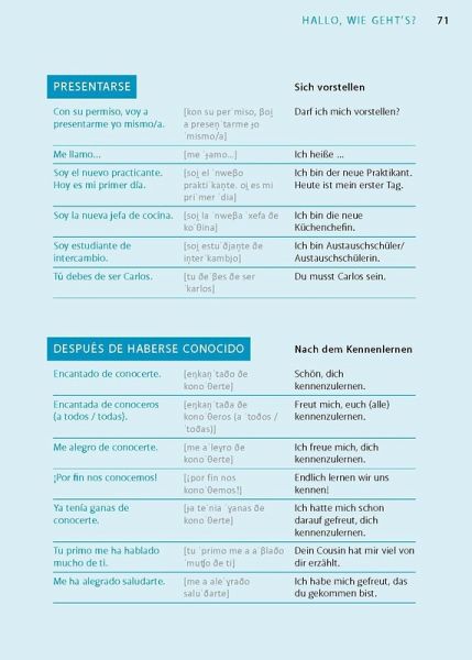 Spanisch auffrischen und erweiternSatzbausteine nachschlagen und lernenDialoge zum Anhören und Nachsprechen: Die spanische Sprache und Kommunikationsfähigkeit aktiv übenAlle Dialoge finden Sie als Audios in der Scan2Learn-AppSpanisch nach Themen: In 14 Kapiteln den wichtigsten Wortschatz vertiefenMehr wissen: Landeskundliche und sprachliche Besonderheiten erweitern und Fettnäpfchen vermeiden
