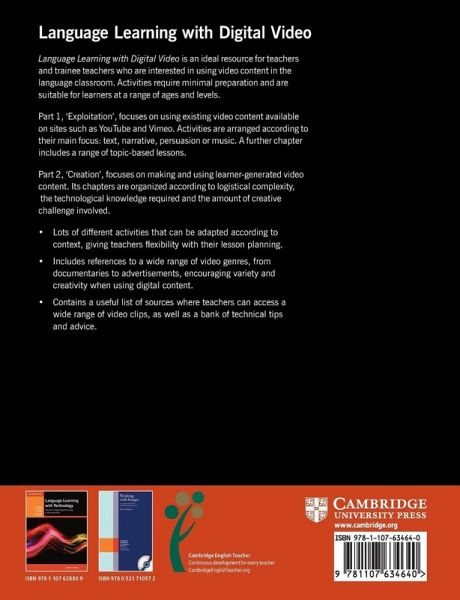 Language Learning with Digital Video is for teachers who are interested in using a range of video in the language classroom, from documentaries to You Tube clips and learner-generated material. The book contains a wide variety of generic, easy-to-use practical activities as well as a number of ready-made worksheets for specific video clips. Activities require minimal preparation and use is made of digital tools where appropriate. Activities are suitable for a range of ages and levels and for both the experienced and less experienced teacher. There is also a useful list of sources, from which teachers can access a wide range of video clips, as well as a bank of technical tips and advice.