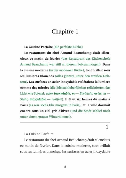 Leseprobe: https://easyoriginal.com/leseproben/DF44.pdf Französische Krimi-Lektüre für Anfänger (A1-A2) - Frank-Lesemethode mit erklärenden Einfügungen & Audio-DownloadTauchen Sie ein in einen Kriminalfall - und verbessern Sie dabei spielerisch Ihr Französisch!Diese spannende Kurzgeschichte ist Teil der beliebten Reihe für Sprachlernende und basiert auf der bewährten Frank-Lesemethode. Handlung: L'Asperge impossible - Der unmögliche SpargelEin Spargel, so perfekt, dass er unmöglich sein kann, landet in einer Pariser Sterneküche. Sein Geschmack ist makellos, doch ihm fehlt die Seele. Der mysteriöse Fund alarmiert das Bureau d'Investigation Agricole, eine Eliteeinheit, die eine fesselnde Jagd nach der Wahrheit beginnt - von der Hauptstadt bis in das Herz der Provence. Schnell wird klar: Dies ist keine simple Fälschung, sondern eine Verschwörung, die an den Grundfesten der französischen Kulinarik rüttelt. L'Asperge Impossible ist ein raffinierter kulinarischer Thriller über den Kampf zwischen Tradition und Täuschung. Eine Geschichte, die Sie den wahren Preis der Perfektion hinterfragen lässt und die Lust weckt, die Wahrheit selbst zu schmecken. Was dieses Buch besonders macht Frank-Lesemethode: Deutsche Erklärungen und Hilfen sind direkt im spanischen Text integriert - ohne den Lesefluss zu unterbrechen Keine klassische Übersetzung, sondern kontextbasierte Unterstützung Originaltext auf B1-Niveau, aber vollständig lesbar für A1-A2 durch gezielte sprachliche Hilfen Inklusive Audio-Download für gezieltes Hörverständnis und Nachsprechen Vorteile für SprachlernendeZugang zu authentischem Französisch ab der ersten Seite - ohne Überforderung Wortschatzaufbau im Kontext, nicht isoliert Verstärkung von Grammatik, Ausdruck und Sprachgefühl Ideal für Selbstlerner, Wiedereinsteiger und motivierende Unterrichtslektüre Diese Geschichte ist Teil einer umfangreichen Reihe für Deutschsprachige, die mit echter Literatur und professioneller sprachlicher Begleitung Französisch lernen möchten. Audio inklusive. Mehr zur Methode: https://easyoriginal.com/frank-lesemethode