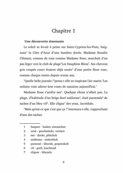 Leseprobe: https://easyoriginal.com/leseproben/DF36W.pdf Le Mystère du sable bleu - Das Geheimnis des blauen SandesMysteriöses Leuchten an der Côte d'AzurEin rätselhaftes Phänomen versetzt den idyllischen Badeort Saint-Cyprien-les-Flots in Aufruhr: Über Nacht tauchen plötzlich leuchtend blaue Flecken im goldenen Sand auf!Während die Erwachsenen ratlos sind, wittern die drei Freunde Léo, Chloé und Hugo ein spannendes Abenteuer. Entschlossen machen sie sich daran, das Geheimnis des blauen Sandes zu lüften. Doch je tiefer sie in den Fall eintauchen, desto mehr Rätsel tun sich auf:Warum verschwindet das Leuchten tagsüber? Was hat es mit dem geheimnisvollen Fremden auf sich, der nachts am Strand herumschleicht? Und wieso scheint das Meer plötzlich von innen zu glühen?Die jungen Detektive riskieren alles, um der Wahrheit auf die Spur zu kommen - und entdecken dabei nicht nur ein faszinierendes Naturphänomen, sondern auch die Kraft von Freundschaft, Neugier und Mut.Tauchen Sie ein in eine magische Geschichte voller Spannung, Humor und mediterranem Flair. "Le Mystère du sable bleu" ist ein mitreißendes Abenteuer für Jung und Alt, das Sie bis zur letzten Seite in seinen Bann ziehen wird.Tauchen Sie ein in die erste packende Geschichte der "Les Enquêtes du club de plage" ("Die Ermittlungen des Strandclubs") Serie und lassen Sie sich von der Brandung der Spannung mitreißen!Tauchen Sie ein in eine Serie fesselnder Krimis, die Ihr Herz schneller schlagen lassen und Ihr Französisch auf das nächste Level bringen. Diese Geschichten sind keine trockenen Lerntexte, sondern nervenaufreibende Pageturner, die Sie mitten in die Action katapultieren. Speziell für Französischlernende auf B1-B2-Niveau entwickelt, wartet hinter jedem Kapitel nicht nur ein spannendes Abenteuer, sondern auch ein umfassendes Wörterbuch. Fremde Begriffe? Kein Problem! Nach jedem Kapitel finden Sie die Übersetzungen, die Ihnen helfen, ohne den Lesefluss zu stören. So können Sie sich voll und ganz in die Handlung vertiefen und gleichzeitig Ihr Sprachgefühl verfeinern. Ideal für alle, die Krimis lieben und dabei ganz nebenbei ihr Französisch verbessern möchten.