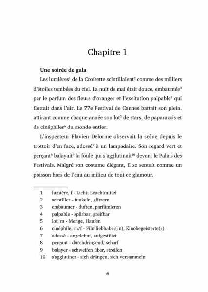 Leseprobe: https://easyoriginal.com/leseproben/DF37W.pdf Le Silence du projecteur - Das Schweigen des ProjektorsEin atemberaubender Thriller vom Filmfestival in CannesTauchen Sie ein in die schillernde Welt des Cannes Filmfestivals, wo Glamour und dunkle Geheimnisse Hand in Hand gehen. Als der renommierte Regisseur Victor Lefort tot aufgefunden wird, steht das Festival Kopf. Inspektor Flavien Delorme und die ehrgeizige Journalistin Margot Pelletier werden in einen Strudel aus Intrigen, Leidenschaft und Verrat gezogen.Was verbirgt Leforts letzter Film? Warum musste der Regisseur sterben? Und wem kann man in einer Welt trauen, in der jeder eine Rolle spielt?Folgen Sie Delorme und Pelletier auf ihrer rasanten Jagd nach der Wahrheit durch die Kulissen des berühmtesten Filmfestivals der Welt. Jede Entdeckung bringt sie der schockierenden Wahrheit näher - und in größere Gefahr.Ein fesselnder Kriminalroman, der die Grenzen zwischen Realität und Fiktion verwischt und Sie bis zur letzten Seite in Atem hält. "Le Silence du projecteur" ist ein Must-Read für alle Fans von atmosphärischen Thrillern und Liebhaber des französischen Kinos.Lassen Sie sich von der Magie und den Abgründen der Filmwelt verzaubern - aber Vorsicht: Nichts ist, wie es auf den ersten Blick scheint!Tauchen Sie ein in die erste packende Geschichte der "Les Mystères cinématographique" Serie und lassen Sie sich von der Brandung der Spannung mitreißen!Tauchen Sie ein in eine Serie fesselnder Krimis, die Ihr Herz schneller schlagen lassen und Ihr Französisch auf das nächste Level bringen. Diese Geschichten sind keine trockenen Lerntexte, sondern nervenaufreibende Pageturner, die Sie mitten in die Action katapultieren. Speziell für Französischlernende auf B1-B2-Niveau entwickelt, wartet hinter jedem Kapitel nicht nur ein spannendes Abenteuer, sondern auch ein umfassendes Wörterbuch. Fremde Begriffe? Kein Problem! Nach jedem Kapitel finden Sie die Übersetzungen, die Ihnen helfen, ohne den Lesefluss zu stören. So können Sie sich voll und ganz in die Handlung vertiefen und gleichzeitig Ihr Sprachgefühl verfeinern. Ideal für alle, die Krimis lieben und dabei ganz nebenbei ihr Französisch verbessern möchten.