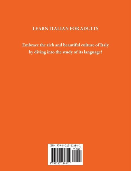 LEARN ITALIAN FOR ADULTS Learning Italian is not easy and there are no quick methods. Whoever is telling you this is an Italian teacher. I don't want to discourage you, far from it! Mastering Italian can be a challenge, but that's what makes it all the more rewarding. Learning a new language is an enriching experience, but it can also be disheartening if you go in with unrealistic expectations and are met with less-than-ideal results. The truth is, there is no shortcut to fluency in Italian - a language known for its intricate grammatical rules and exceptions. However, there are ways to make the journey more enjoyable. Our book, "Learn Italian For Adults: Easy Speak 4 in 1," provides a fresh, hands-on approach that allows you to learn the basics of Italian without feeling bogged down by grammar rules. Join us on this exciting journey to immerse yourself in the beautiful Italian culture through the study of its language! This is a comprehensive guide for English/Americans who want to master the Italian language. The unique teaching method is designed to make learning Italian an enjoyable and rewarding experience, without feeling overwhelmed by grammar rules and complex vocabulary. The "Easy Speak 4 in 1" method focuses on building a solid vocabulary and direct knowledge of basic sentence structure. The ultimate objective of this book is to empower Italian beginners to reach a level of proficiency that enables them to progress towards intermediate-level studies with confidence and ease. In addition to the fundamentals, the book features two levels of short stories that will challenge and engage learners, helping them to improve their comprehension skills and fluency in Italian. The stories are designed to be fun and entertaining, while also being educational. The book also includes funny jokes, quizzes, and final exercises to assess progress and identify areas for improvement. So, whether you're a complete beginner or just looking to improve your Italian skills, "Learn Italian For Adults: Easy Speak 4 in 1" is the perfect guide to help you reach your language learning goals. Embrace the rich and beautiful culture of Italy by diving into the study of its language!