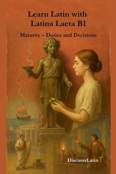 Learn Latin with Latina Laeta B1 - Voices of the Roman World Follow Latin into the heart of Roman life - clear, rich, and deeply human. Latina Laeta B1 (Books 11-15) carries the series into its first real maturity. Across more than 118,000 words of continuous Classical Latin, the world widens again: senators speak in crowded atria, actors rehearse behind taverns, merchants quarrel over coins that may not ring true, and families face choices that shape their futures. Latin now speaks in many voices - sharp, humorous, anxious, hopeful - all in readable Silver-Age prose. You follow Spurius far from Italy to Ephesus, where he serves in his first official post without his father beside him. There he walks straight into real danger: poison, a dead priest, angry merchants, false silver, and a crowd eager to blame "magicians." As he questions bankers, opens sealed rooms, and watches judgment carried out, he learns that justice can feel heavy even when it is rightly done. In Campania, Flaminia faces a different test. Suitors begin to circle, each visit weighing on her composure and her future. Her mother teaches her how a Roman woman must answer, refuse, and guard her own thoughts - lessons that grow sharper when Flaminia sees an unexpected warmth in her mother at Saturnalia and feels her own heart pull in directions she cannot easily name. Far to the west, Blossius reaches a breaking point in Tingis. His love of the theatre clashes with his father's demands until one final argument pushes him to choose the road. With an acting troupe he learns the real cost of performance: hunger, dust, danger, and the stubborn hope that stories can carry a life forward. Their paths never cross in B1, yet each takes a step that marks the end of childhood - and the beginning of everything that follows. Grammar and style rise gently within the stories. Subordinate clauses, participles, and indirect speech appear through use, not drills. Extensive reading makes comprehension settle by familiarity; curiosity carries you onward. Why learners love Latina Laeta B1 ¿ 118,000+ words of continuous Latin ¿ Fluency through story, not exercises ¿ Authentic Classical Latin, modeled on Terence, Petronius, Pliny, Suetonius ¿ Human realism: work, wit, poverty, dignity ¿ New Plautine-Terentian comedies ¿ Smooth progression from A2 into full Classical style Latina Laeta B1 - where youth steps into the Roman world, and Latin becomes a living language.