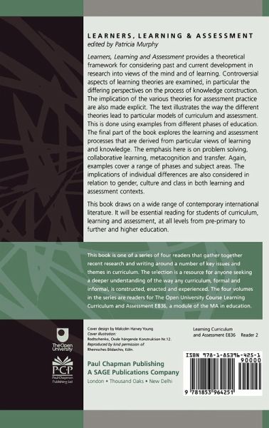 This textbook provides a theoretical framework for considering past and current developments in research into views of the mind and of learning. Controversial aspects of learning theories are examined, in particular the differing perspectives on the process of knowledge construction. The implications of the various theories for assessment practice are also made explicit. The text illustrates the way different theories lead to particular models of curriculum assessment, using examples from different phases of education. The final part of the book explores learning and assessment processes derived from particular views of learning knowledge. Learners, Learning and Assessment is a Course Reader for The Open University course E836 Learning Curriculum and Assessment.
