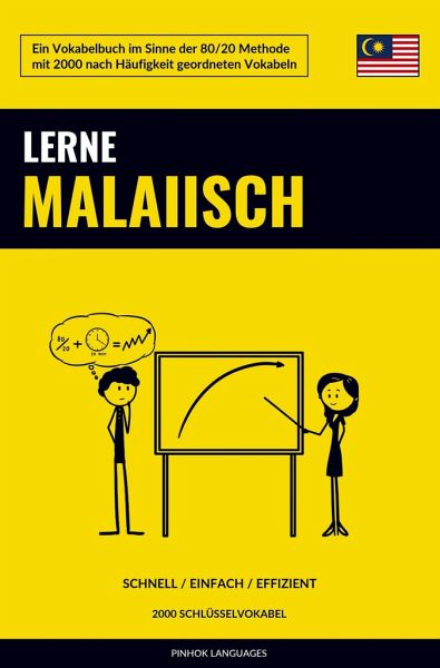 Dieses Vokabelbuch beinhaltet 2000 der häufigsten Malaiisch Vokabel und wurde im Sinne des Pareto-Prinzips (80/20 Regel) zusammengestellt. Ziel des Buches ist es, den Lernprozess so weit wie möglich zu optimieren indem die wichtigsten Wörter zuerst gelernt werden. Das Resultat ist ein einzigartiges Vokabelbuch ideal für hochmotivierte Lernende.Den größtmöglichen Erfolg, mit diesem Buch Malaiisch zu lernen, haben jene Lernende, die dieses Buch täglich verwenden. Eine vielverwendete Herangehensweise ist es, täglich beispielsweise 100 Vokabel zu wiederholen. Um das zu erleichtern, ist das Buch in Kapitel mit je 25 Vokabel unterteilt. Wenn Sie zurzeit sagen wir Vokabel 101 bis 200 lernen, wiederholen Sie diese 100 Vokabel idealerweise jeden Tag. Wenn Sie merken, dass Sie Vokabel 101 bis 125 gut verinnerlicht haben, können Sie diese am nächsten Tag weglassen und das Lernen mit Vokabel 126 bis 225 fortsetzen. So können Sie sich mit minimalem täglichen Zeitaufwand Schritt für Schritt durch das Buch arbeiten. Bereits gelernte Vokabel sollten Sie, wenn möglich, von Zeit zu Zeit wiederholen um diese nicht zu vergessen, alle 1-2 Wochen sind dafür in der Regel ein guter Zeitraum.