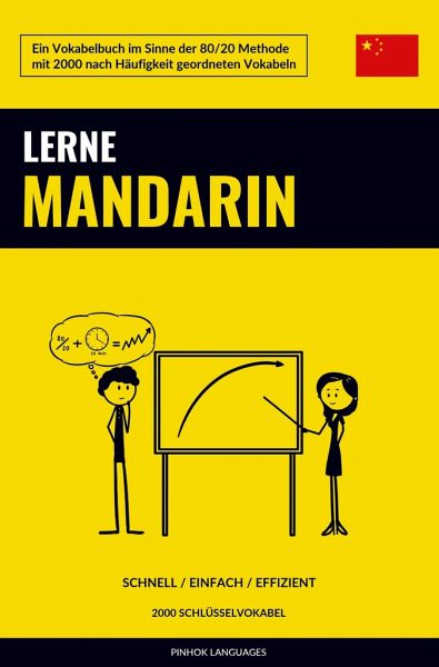 Dieses Vokabelbuch beinhaltet 2000 der häufigsten Mandarin Vokabel und wurde im Sinne des Pareto-Prinzips (80/20 Regel) zusammengestellt. Ziel des Buches ist es, den Lernprozess so weit wie möglich zu optimieren indem die wichtigsten Wörter zuerst gelernt werden. Das Resultat ist ein einzigartiges Vokabelbuch ideal für hochmotivierte Lernende.Den größtmöglichen Erfolg, mit diesem Buch Mandarin zu lernen, haben jene Lernende, die dieses Buch täglich verwenden. Eine vielverwendete Herangehensweise ist es, täglich beispielsweise 100 Vokabel zu wiederholen. Um das zu erleichtern, ist das Buch in Kapitel mit je 25 Vokabel unterteilt. Wenn Sie zurzeit sagen wir Vokabel 101 bis 200 lernen, wiederholen Sie diese 100 Vokabel idealerweise jeden Tag. Wenn Sie merken, dass Sie Vokabel 101 bis 125 gut verinnerlicht haben, können Sie diese am nächsten Tag weglassen und das Lernen mit Vokabel 126 bis 225 fortsetzen. So können Sie sich mit minimalem täglichen Zeitaufwand Schritt für Schritt durch das Buch arbeiten. Bereits gelernte Vokabel sollten Sie, wenn möglich, von Zeit zu Zeit wiederholen um diese nicht zu vergessen, alle 1-2 Wochen sind dafür in der Regel ein guter Zeitraum.