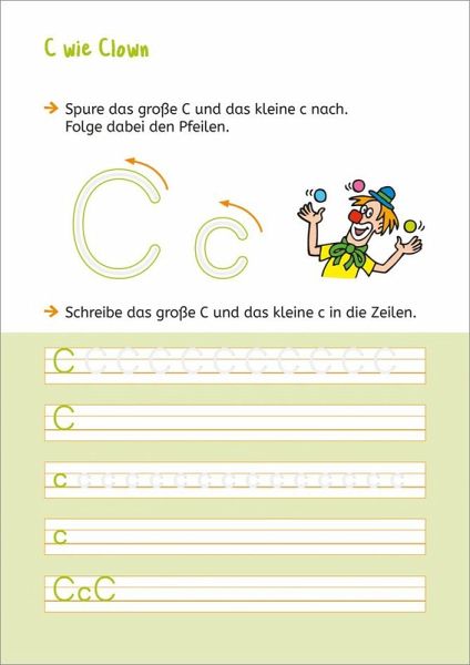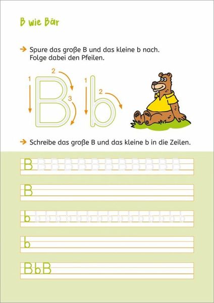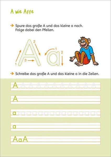 So macht das Schreibenlernen Spaß! Mit dem Block üben Kinder, die großen und kleinen Buchstaben von A bis Z zu schreiben. Dabei werden sie durch eingeprägte Spurrillen unterstützt. Diese helfen dabei, auf der Linie zu bleiben, und erleichtern so den Einstieg in die gezielte Stiftführung. Damit sich die Kinder den Buchstaben und den dazugehörigen Laut gut einprägen können, gibt es zu jedem Buchstaben ein buntes Anlautbild. Geeignet für Kinder ab 6 Jahren.