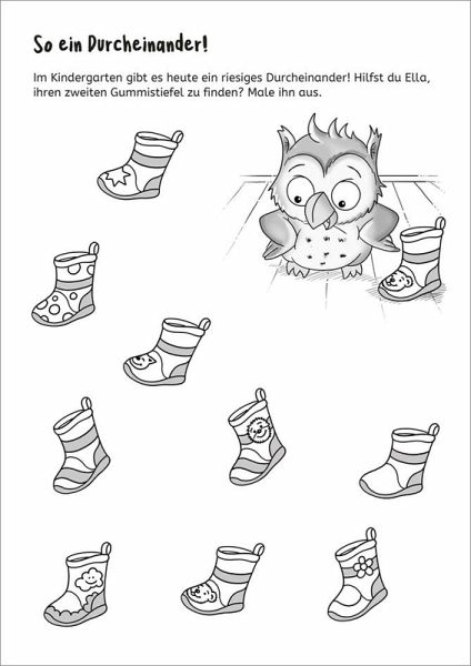 Welche Schmetterlinge sehen gleich aus? Welche Gegenstände sind rund und welche eckig? Die Katzenbabys haben sich im Garten versteckt, aber wo? Welche Gummistiefel gehören zusammen? Mit abwechslungsreichen Übungen trainieren Kindergartenkinder spielerisch ihre Feinmotorik, Wahrnehmung und Konzentration. Sind die Rätsel gelöst, können die Bilder nach Belieben noch bunt ausgemalt werden. Mit niedlichen Illustrationen und altersgerechten Aufgaben bietet der Block clevere Unterhaltung für Kinder ab 4 Jahren.