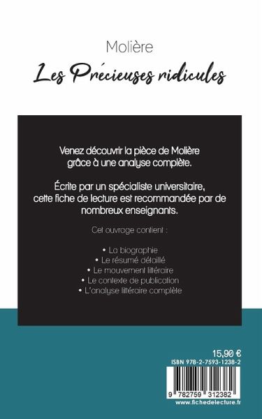 Venez découvrir Les Précieuses ridicules de Molière grâce à une analyse littéraire de référence ! Écrite par un spécialiste universitaire, cette fiche de lecture est recommandée par de nombreux enseignants. Cet ouvrage contient la biographie de l'écrivain, le résumé détaillé, le mouvement littéraire, le contexte de publication de l'oeuvre et l'analyse complète. Retrouvez tous nos titres sur : www.fichedelecture.fr.