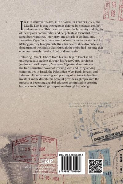 In the United States, the dominant perception of the Middle East is that the region is defined by violence, conflict, and extremism. This narrative erases the humanity and dignity of the region's communities and perpetuates Orientalist myths about backwardness, inferiority, and a clash of civilizations. Levantine Vignettes is the account of one history educator and his lifelong journey to appreciate the vibrancy, vitality, diversity, and dynamism of the Middle East through the embodied learning that emerges through travel and cultural immersion. Following Daniel Osborn from his first trip to Israel as an undergraduate student through his Peace Corps service in Jordan and well beyond, Levantine Vignettes demonstrates the transformative power of working with and living among communities in Israel, the Palestinian West Bank, Jordan, and Lebanon. From harvesting and planting olive trees to herding livestock in the desert, this account provides a glimpse into the process of becoming a global educator committed to crossing borders and cultivating compassion through knowledge.
